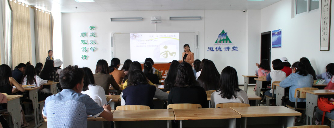 4月23日下午,安顺学院“崇德向善 百善之首孝为先”专题讲座在学校道德讲堂举行。安顺学院学习宣传贯彻党的十九大精神和习近平总书记在贵州省代表团重要讲话精神高校名师宣讲团成员,经济与管理学院书记、院长赵伶俐主讲,外国语学院学生听讲。