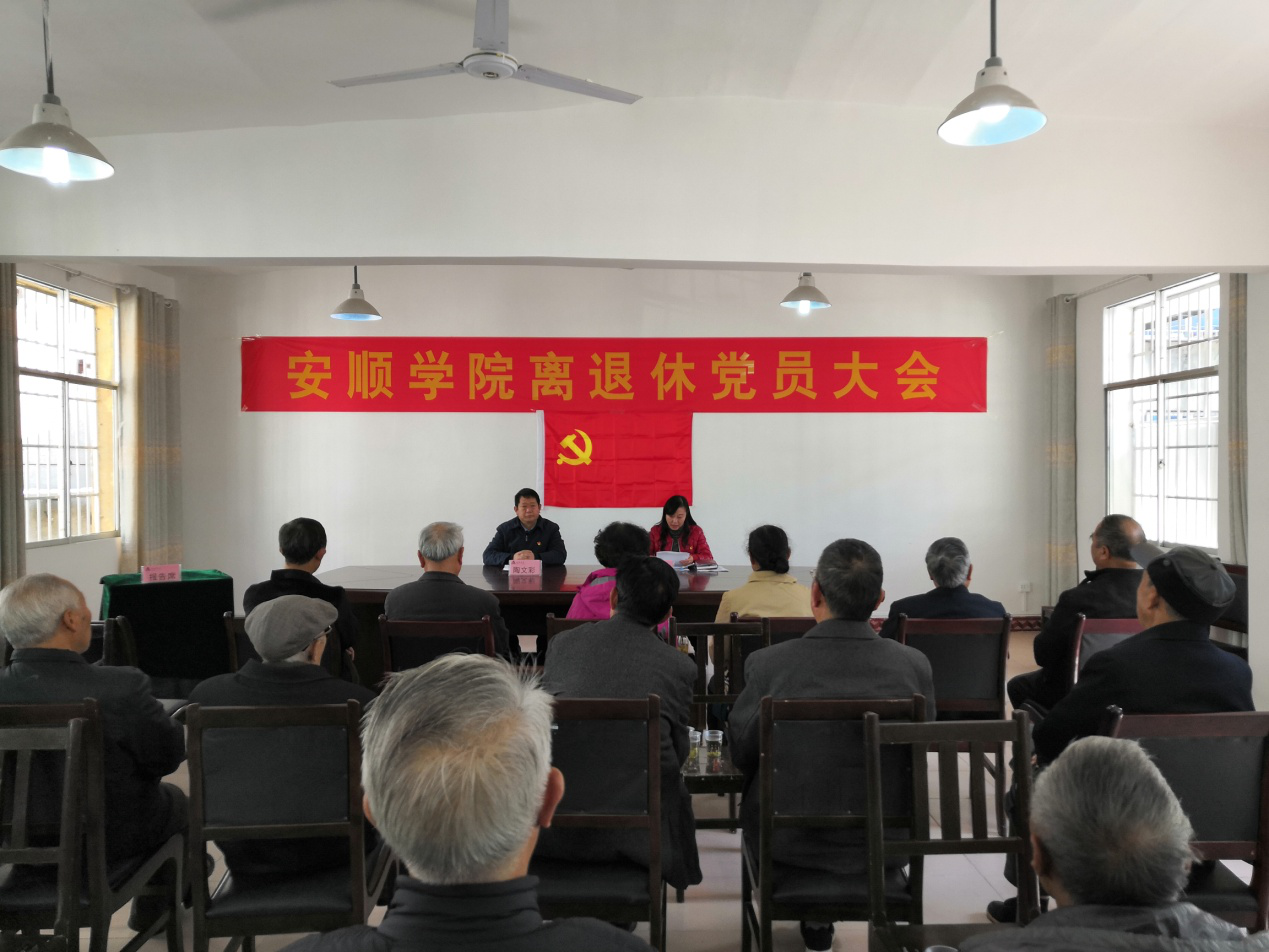 11月23日下午,安顺学院离退休处召开全体党员大会。安顺学院党委副书记陶文彩出席会议,会议由离退休党总支书记刘颖主持。