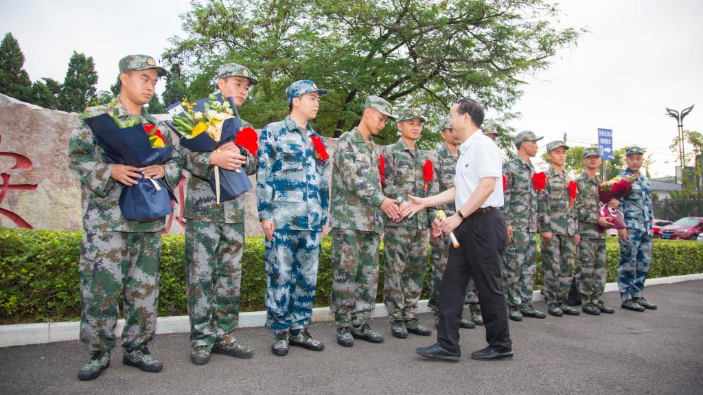 学校党委书记罗荣彬出席欢送会并讲话。他向本批起运的同学表示祝贺,祝贺他们通过选拔光荣进入军营。他向同学父母和老师们感谢,感谢他们对孩子的养育之恩和对学生的教诲之情。他勉励同学们谨记和发扬校训精神,接受新时代军营洗礼,早日成为优秀军人。(文/图 学工部、武装部 鲁小周/宣传部 王键)