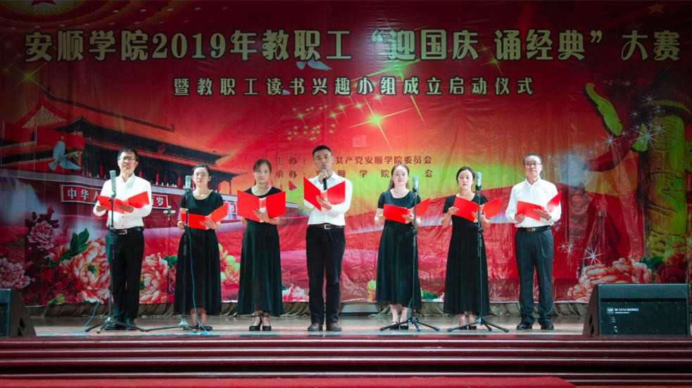 为隆重庆祝新中国成立70周年,回顾党的光辉历史,讴歌党的丰功伟绩,进一步激发师生党员的使命感和责任感,加强党性锻炼,深入推进“不忘初心、牢记使命”主题教育,近期,安顺学院组织开展了升国旗仪式、走访慰问、大型诵读歌唱比赛等各类活动,全校64个党支部围绕“为师生办一件实事好事”、“红色教育”、“我和我的祖国,牢记初心使命”等主题,组织900余名党员开展了形式各样、内容丰富的主题党日活动。