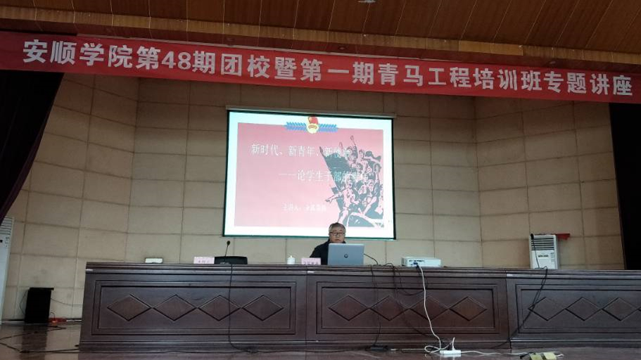 2019年11月20日下午,安顺学院党委委员、副校长令狐荣涛以“新时代、新青年、新使命”为主题在学术报告厅为第四十八期团校暨第一期青年马克思主义者工程培训班做专题讲座。讲座由校团委副书记胡蕾主持,700余名学生听讲。