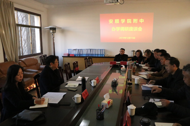 12月13日上午,安顺市教育局局长李锦鸣到安顺学院附中调研指导工作。安顺学院党委书记罗荣彬、副校长令狐荣涛陪同调研。附中党委书记陈宇、校长罗瑜,附中领导班子成员、办公室、教务科、教研科主要负责人参加调研会。