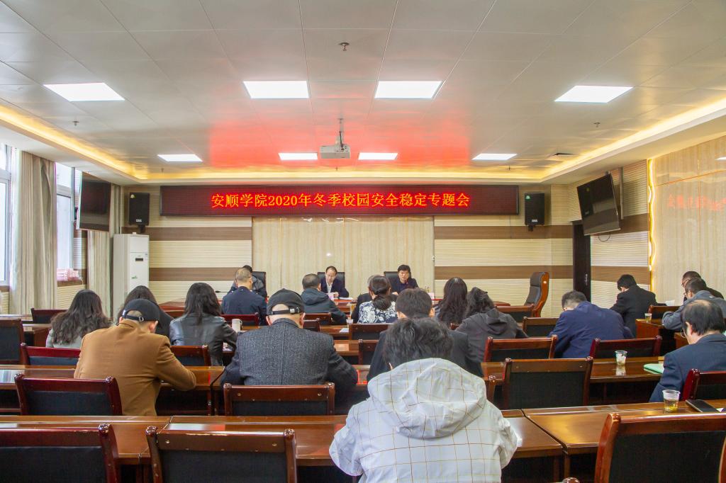 为切实做好校园安全稳定各项工作,2020年10月23日上午,安顺学院在特教大楼七楼会议室召开2020年冬季校园安全稳定专题会。学校党委书记罗荣彬、校长陈云坤、副校长张来、各综治成员单位负责人、各二级学院书记参加会议。