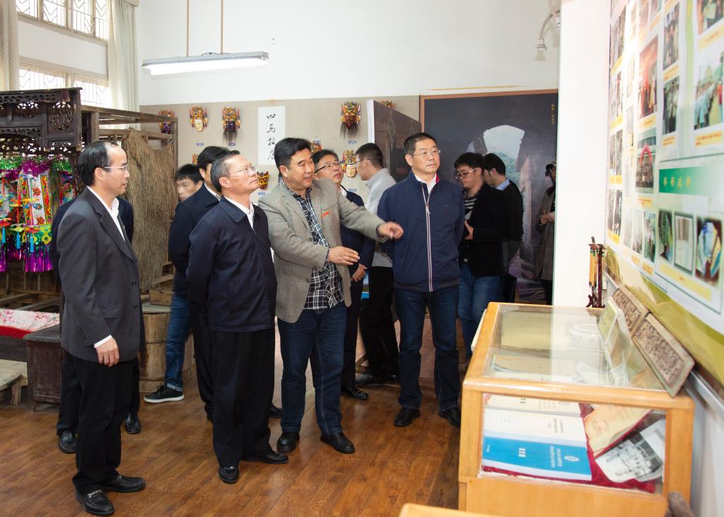 胡忠雄一行先后实地走访了安顺学院屯堡文化研究中心(以下简称“屯研中心”)、学生事务服务中心、教育学院教师党支部、图书馆等地。在听取有关部门(学院)负责人汇报后,胡忠雄分别就安顺学院屯研中心的建设、屯堡文化学术活动的开展、学生事务服务中心各服务窗口运行情况、学生资助比例、教育学院教师党支部建设情况及图书馆建设与使用情况进行调研。胡忠雄仔细询问了安顺学院的研究生考试报考、毕业生就业、学生社团建设、学校各项经费等情况。