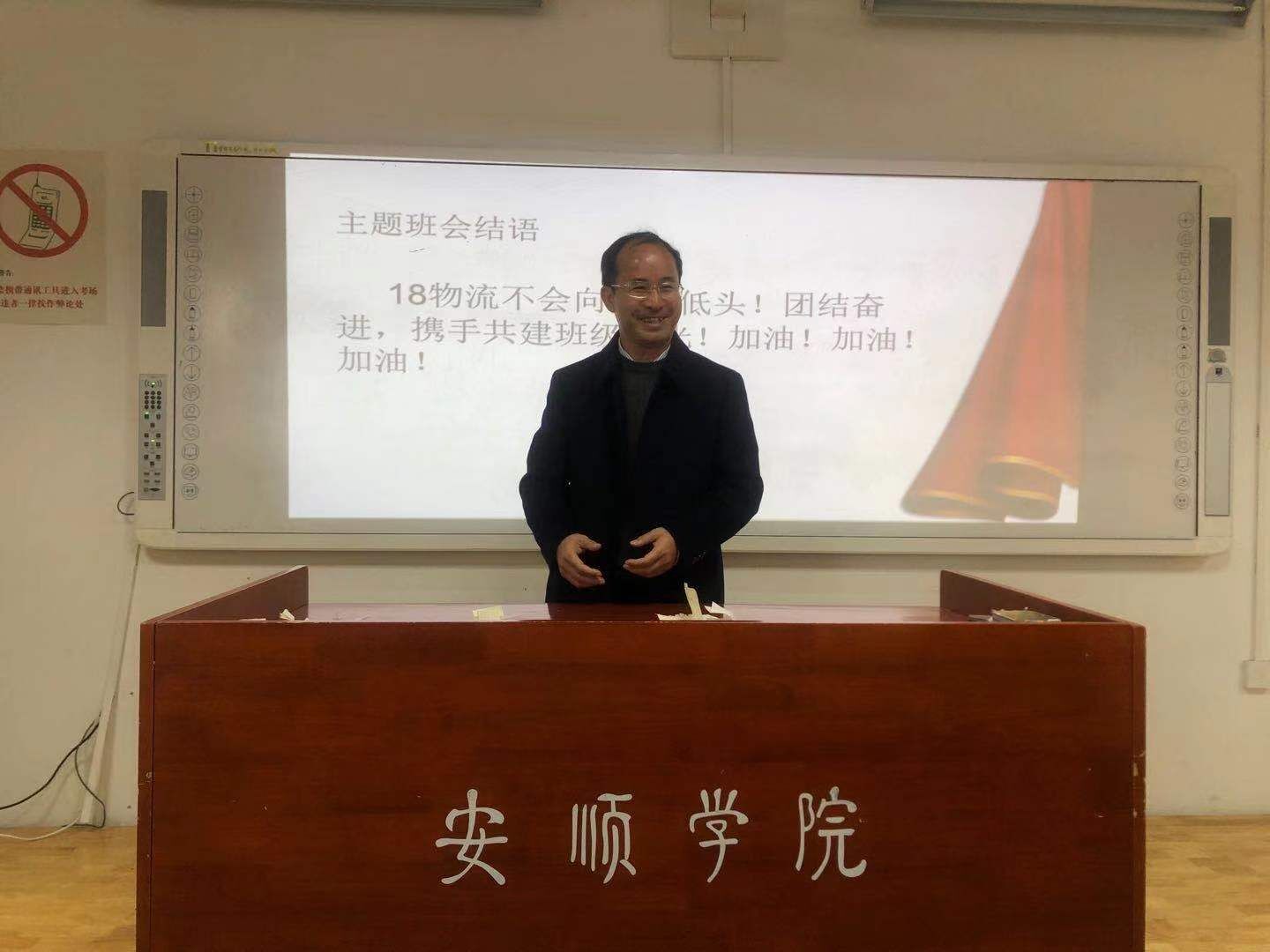11月17日,安顺学院党委书记、经济与管理学院2018级物流工程班班级导师罗荣彬参加“团结奋进 开启新程”思政主题班会。
