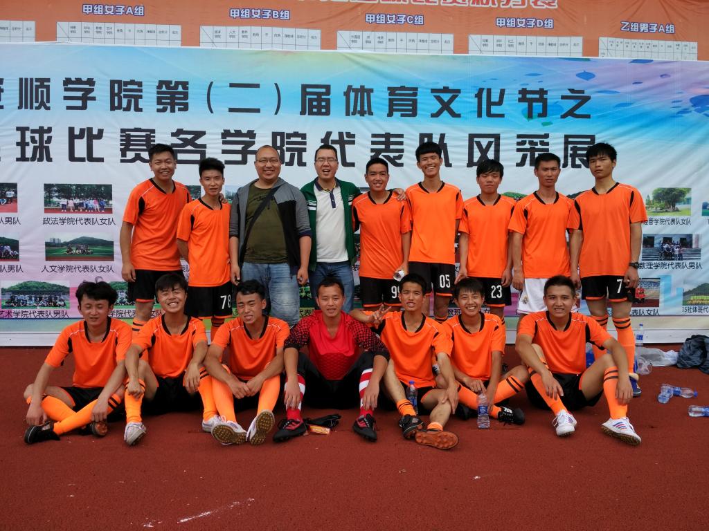 安顺学院辅导员崔亚飞(后排左四)带队参加校园足球赛