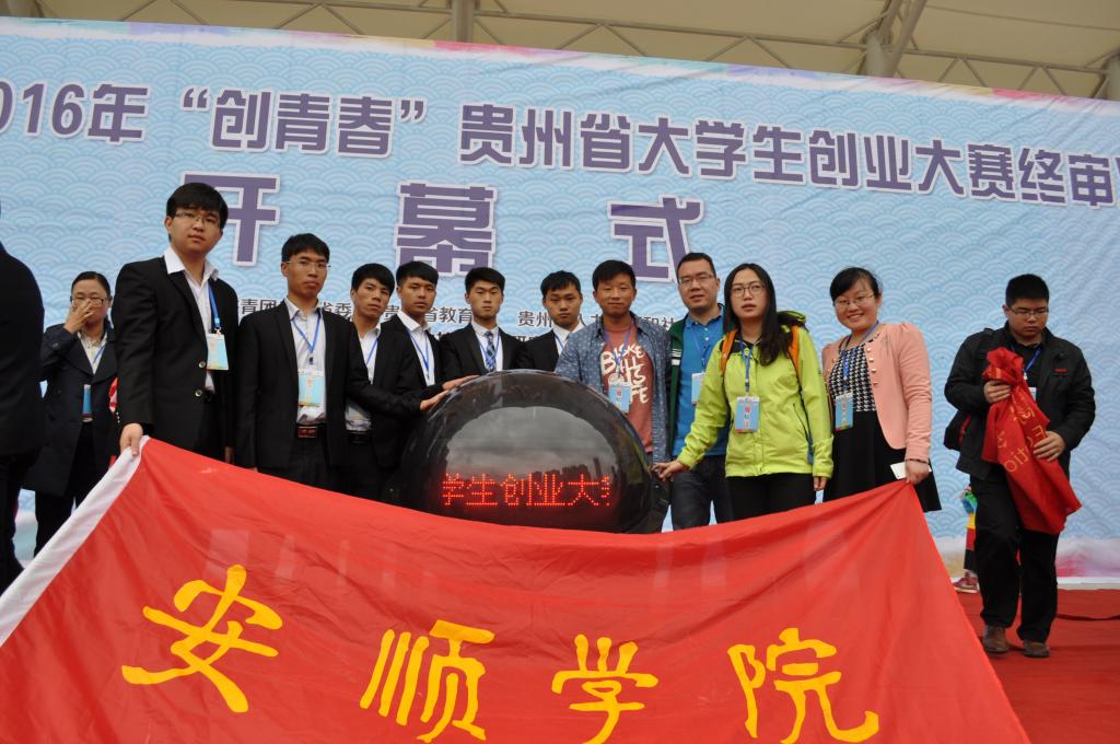 安顺学院辅导员崔亚飞(右四)带领学生参加创青春大学生创新创业大赛