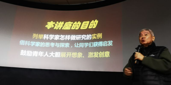 陈贺能就《怎样练就基本功,成就科学梦》从好奇发现、细心观察,独立思考、大胆想象、大胆实践五个方面深入浅出地阐述了大学生应该练就什么样的基本功,怎样练就基本功,列举了科学家们怎么做研究的实例,借科学家的思考与探索,让同学们获得启发,鼓励同学们要大胆展开想象,激发创意,掌握观察、思考、想象、尝试的创新规律,期盼同学能象弗莱明、达尔文一样对已知的知识进行思考,对未知的知识进行探索,从而进一步提升创造力。要求同学们努力学好每一门功课,在练好基本功的同时保有一颗好奇之心,并为之去思考和实践定能有所获。