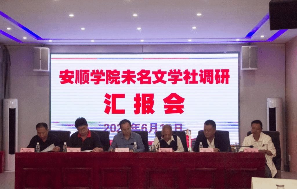 6月10日下午,安顺学院未名文学社调研采风汇报会在西秀区七眼桥镇夏官小学召开,安顺学院党委书记罗荣彬出席会议,七眼桥镇党委书记陈剑、七眼桥镇清水屯村支书周飞、夏官小学校长朱光伟、安顺学院关工委副主任潘发义、师文慧、离退休干部工作处处长刘颖、副处长陈剑康、清水屯驻村队员卢书章、陈泽禾、任明、王东,未名文学社调研组、清水屯村支两委和夏官小学师生代表100余人参加会议。安顺学院关工委常务副主任杨通邦主持会议。