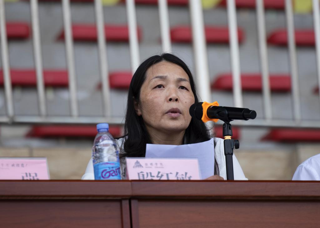 安顺学院党委委员、纪委书记、监察专员蔡红英宣读标兵学员和优秀学员、优秀通讯员、优秀教官表彰名单