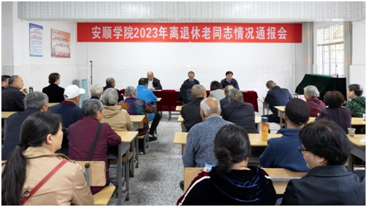 2023年10月20日下午,安顺学院在离退休处召开学校发展情况通报会并开展重阳节活动,向老同志们通报学校发展情况,与老同志们共同庆祝重阳佳节。安顺学院党委书记罗荣彬,党委副书记、校长陈云坤,党委委员、副校长郭本华出席会议。安顺学院党政办、党委宣传部、人事处、后勤处、离退休处等部门领导及离退休老同志代表50余人参加会议。会议由郭本华主持。