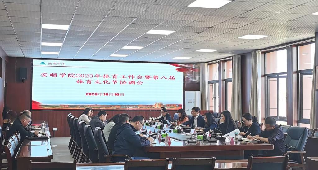 会议通报了安顺学院2023年体育工作推进情况,并就第八届体育文化节筹备情况及开幕式方案进行了汇报。