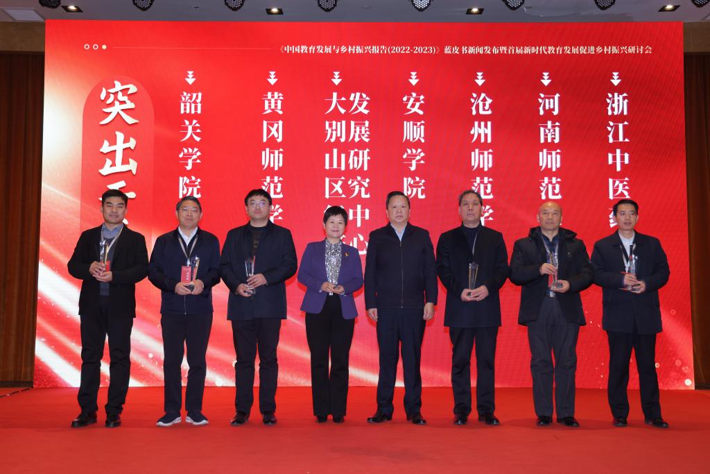 安顺学院党委委员、副校长郭本华代表安顺学院领取《中国教育发展与乡村振兴报告(2022-2023)蓝皮书(贵州卷)》撰写“突出贡献奖”