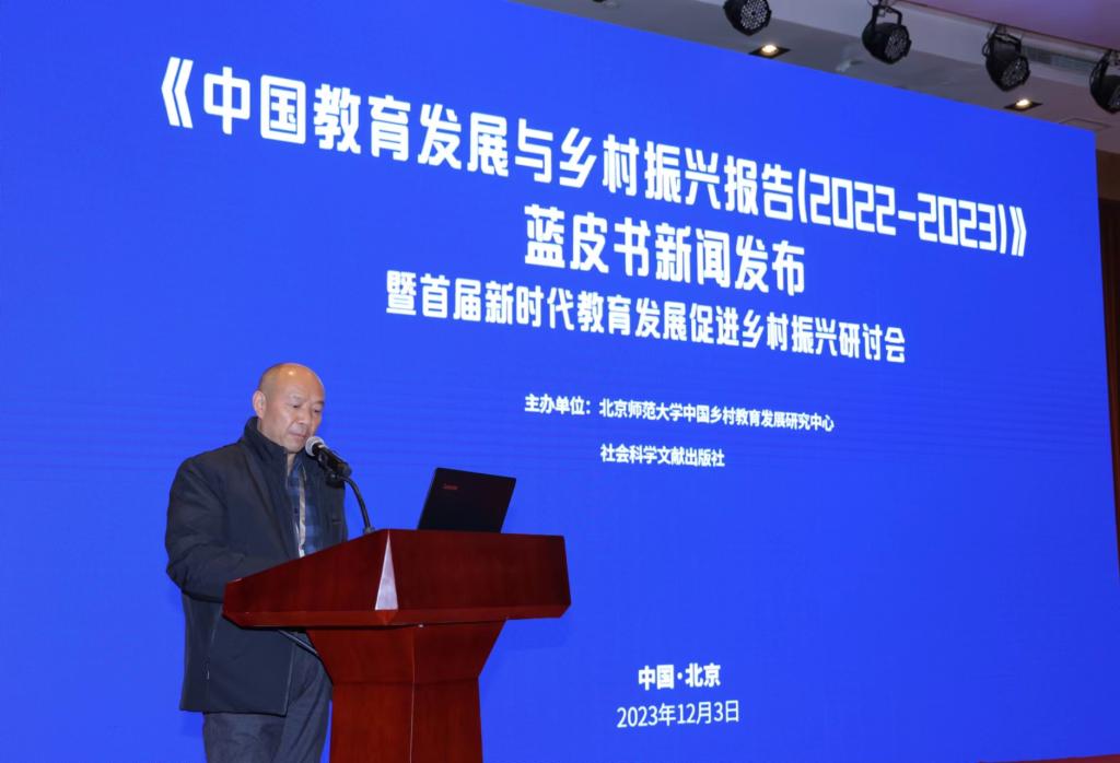 国家乡村振兴局(国务院扶贫办)原党组成员司树杰,国家乡村振兴局原开发指导司副司长、民进中央参政议政特邀研究员刘晓山,教育部学位与研究生教育发展中心原主任、中国教育发展战略学会副会长王立生,社会科学文献出版社总编杨群,中国乡村教育发展研究中心执行主任李兴洲等领导出席新闻发布会并发表讲话。