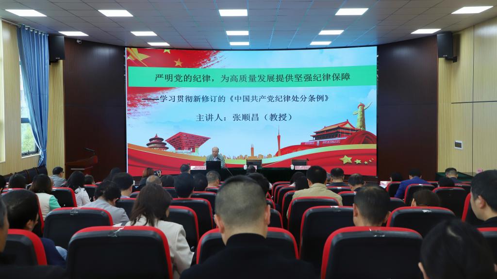 4月21日下午,安顺学院党纪学习教育读书班开班式暨专题辅导在安道楼二楼阶梯教室举行。校党委委员、校领导,各基层党委、各部门副处级以上党员干部,学校纪委委员,各基层党委纪检委员参加。党委副书记陶文彩主持,党委书记罗荣彬讲话。开班式结束后,省委党校党的建设研究院张顺昌教授着重从总则、分则及附则三个方面158条对《中国共产党纪律处分条例》进行了解读,讲清楚党的纪律规矩是什么,弄明白能干什么、不能干什么,给全校党员干部作了一次全面系统、深入生动的专题辅导。