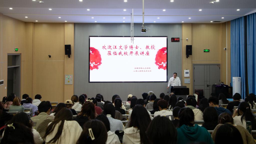2024年5月7日晚,安顺市人民政府副市长、九三学社安顺市委主委、文学博士、教授汪文学到安顺学院作“诗教中国与诗意生活”主题讲座,与广大师生共同分享关于诗的感悟与体会。安顺学院校长曾丽,中国作家协会会员、原安顺市文联主席姚晓英,人文学院师生代表等160余人参加聆听。讲座由人文学院副院长李云根主持。