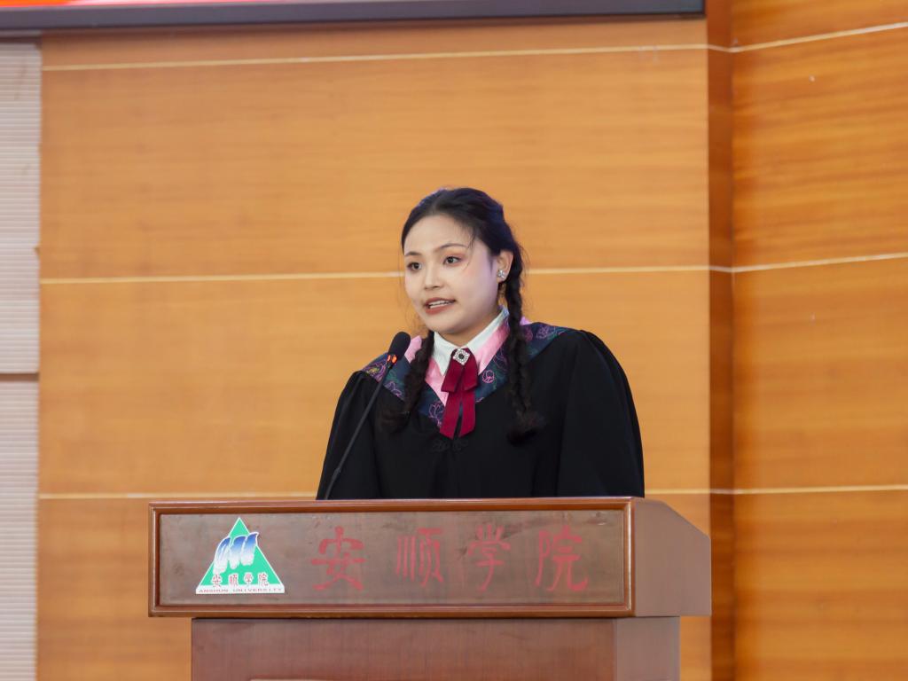 安顺学院校长曾丽以“以梦为马行稳致远 追光而行万里可期 以奋斗之笔书写无悔青春”为题致辞