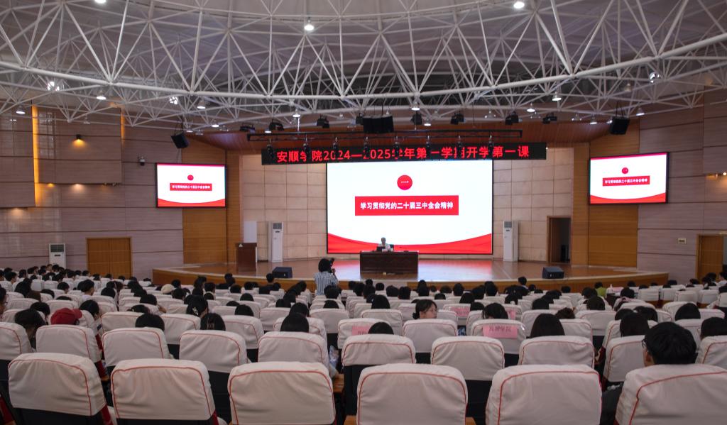此场“开学第一课”内涵丰富、思想深刻,既有高屋建瓴的理论指导,又有生动具体的案例分析,强调学习宣传贯彻好党的二十届三中全会精神和省委第十三届五次全会精神,并结合当前安顺学院转型提质的关键时期,启发师生勇担时代大任,在全面建设社会主义现代化国家新征程中施展抱负、建功立业。(文/图:宣传部   蒋欣原/娄仁彪)