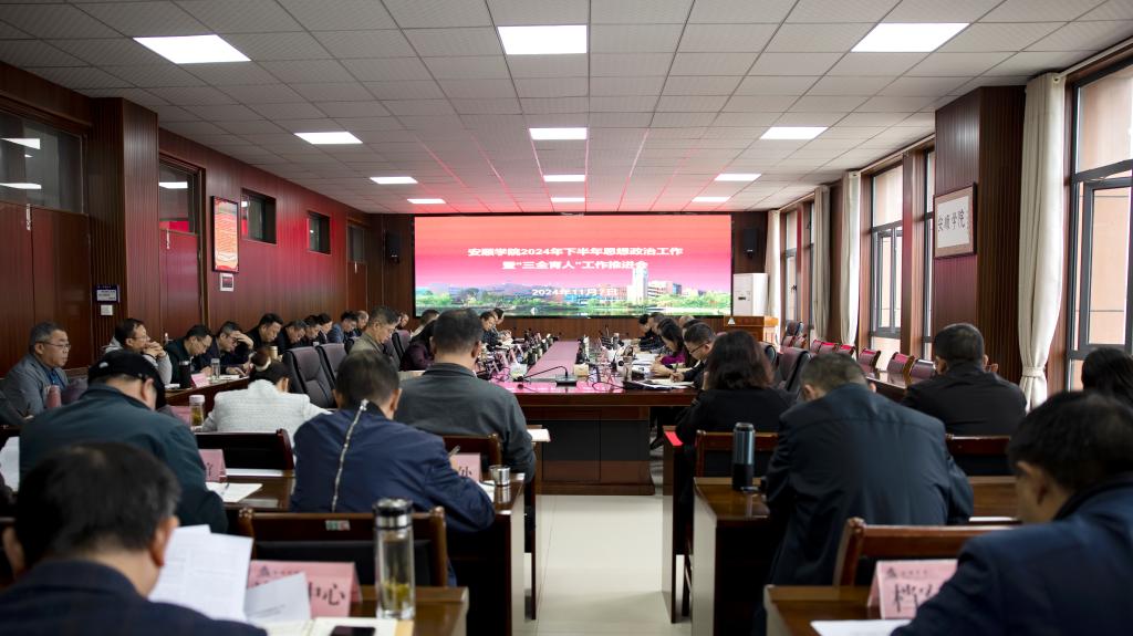 2024年11月7日下午,安顺学院在安道楼五楼会议室召开2024年下半年思想政治工作暨“三全育人”工作推进会。安顺学院党委书记罗荣彬、校长曾丽,党委委员、副校长郭本华,党委委员、纪委书记、监察专员蔡红英,党委委员、副校长韦英,党委委员、副校长殷红敏,各基层党委书记,各职能部门负责人参加会议。会议由韦英主持,罗荣彬作讲话。