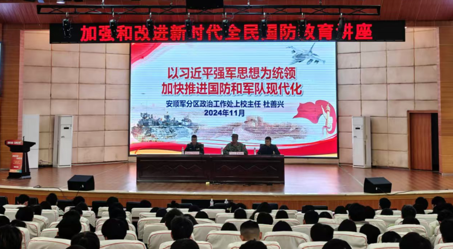 为学习宣传贯彻习近平强军思想,培养师生爱党爱国爱军爱民的深厚情感,增强师生国防意识,开展2025年征兵动员,安顺学院邀请安顺军分区政治工作处上校主任杜善兴于2024年11月18日下午到校主讲国防教育专题讲座。