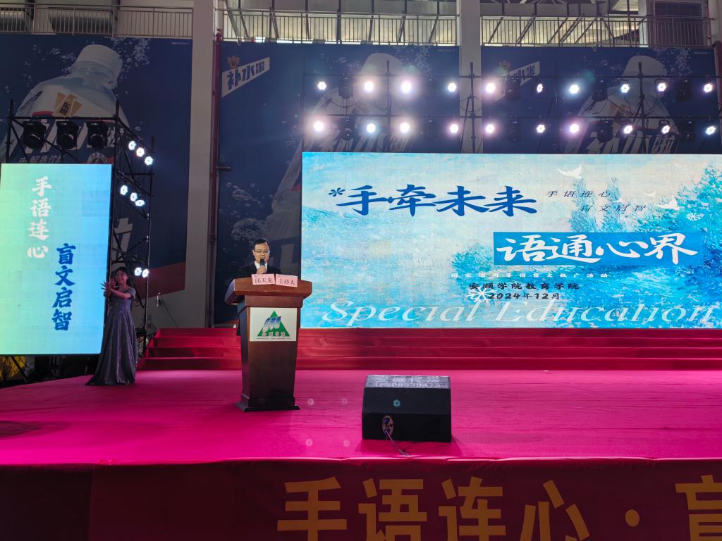 12月16日上午,安顺学院省级语言文字推广基地在安顺学院新校区体育馆举行国家通用手语盲文推广活动启动仪式,本次活动由贵州省语言文字推广基地、安顺学院特殊教育学院主办,共青团安顺学院委员会协办,特殊教育学院团总支学生会承办。