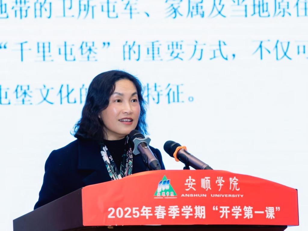 安顺学院2025年春季学期“开学第一课”在主持人——艺术学院舞蹈学专业主任胡婷娜老师对屯堡文化的介绍中拉开帷幕。
