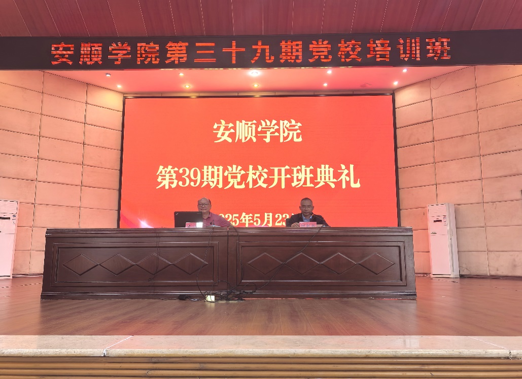 2025年5月23日下午,安顺学院第39期党校培训班在学术报告厅开班。安顺学院党委副书记李琳出席开班仪式,同时为512名入党积极分子和发展对象讲授课程。安顺学院党委委员、党委组织部部长何朝越主持开班仪式。