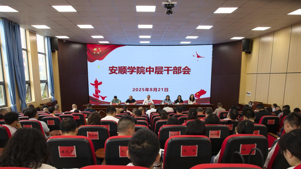 2025年8月21日下午,安顺学院2025—2026学年度第一学期中层干部大会在安道楼二楼阶梯教室召开。安顺学院校领导,全体正、副处级干部参加会议。会议由安顺学院党委副书记李琳主持。