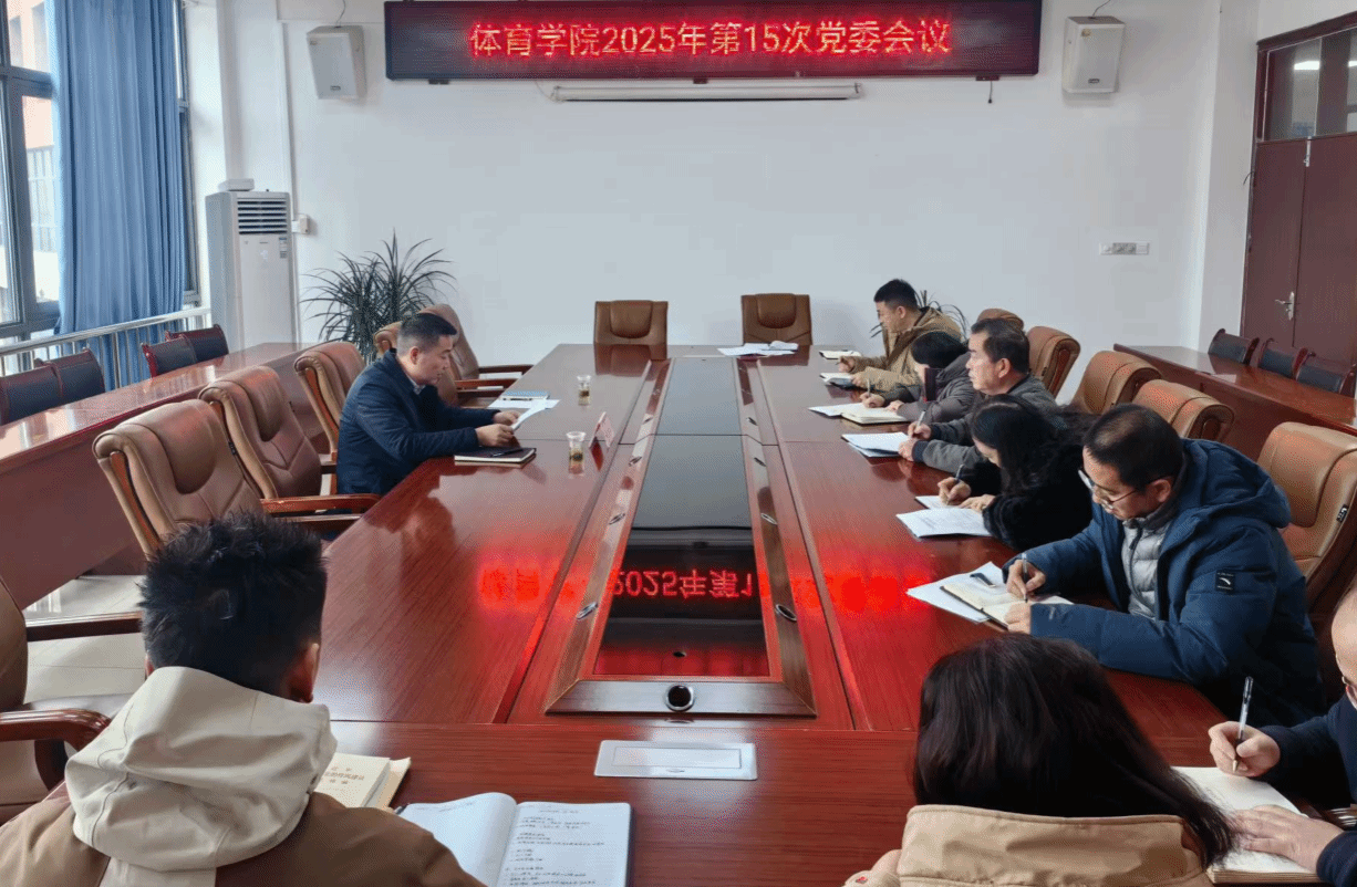 肖禹春对会议的程序和内容作了指导,并提出工作要求。他强调,一要强化政治引领,把牢事业发展方向。持续深入学习领会习近平新时代中国特色社会主义思想,抓好党的二十届四中全会精神的学习宣传与贯彻落实,牢牢把握新时代党的建设总要求,自觉扛起管党治党政治责任。二要严格执行学院党委会会议和党政联席会议议事规则,凡属“三重一大”事项必须经集体讨论决定,确保决策的民主化科学化。三要大力弘扬中华体育精神,压紧压实工作责任,以高度的政治自觉和扎实的工作作风,服务师生,奋力开创事业发展新局面,为体育强国建设贡献力量。(文/图:纪委       陈曦)