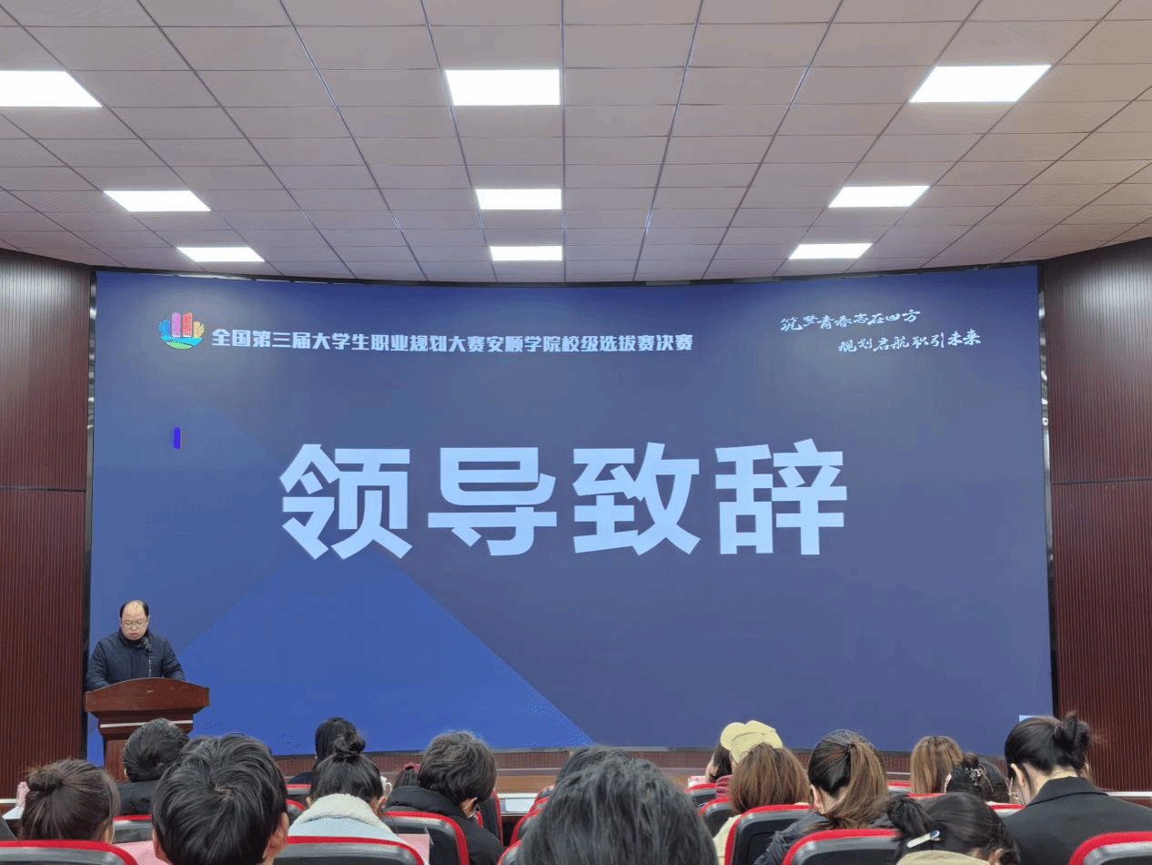 12月22日,第三届全国大学生职业规划大赛安顺学院校级选拔赛决赛在安道楼二楼阶梯教室举行。安顺学院党委常委、副校长孙向阳出席大赛并致辞,招生与就业指导处、校团委、教务处等相关部门负责人、二级学院就业专干、指导老师及100余名学生现场观看了比赛。
