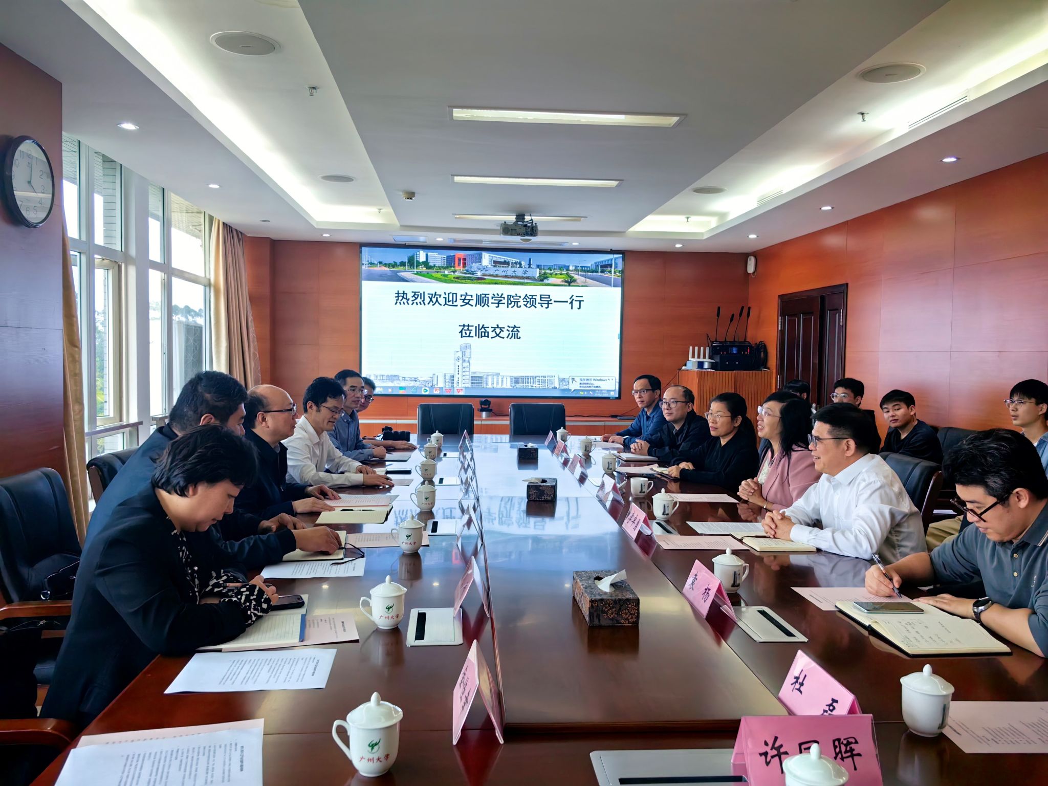 为深化校际合作交流,借鉴高水平高校办学治校先进经验,赋能学校高质量发展,2025年12月19日,安顺学院党委副书记李琳带队赴广州大学、中山大学开展交流学习,学校党政办、科研处、化学化工学院相关同志陪同参加。