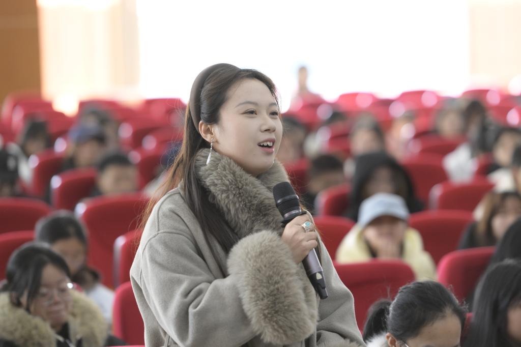 互动交流环节,姚晓英化身亲切的“大师姐”,耐心解答同学们关于非遗活化、自我提升、文旅特色等方面的疑问。现场气氛热烈、融洽,尽显名家风采与校友温情。
