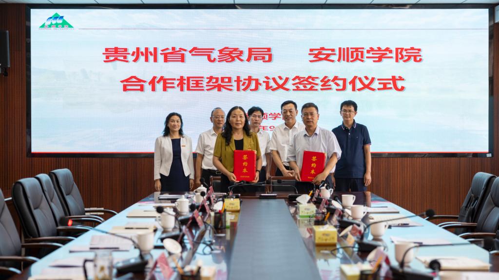 会上,签订了《安顺学院贵州省气象局合作框架协议》,杨林、殷红敏作为双方代表签约。
