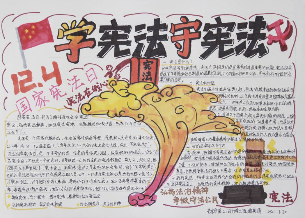 我校充分利用活动契机,举行宪法知识手抄报制作比赛,全校学生积极参加,活动共收到手抄报330份,充分展示了全校师生对宪法的尊崇和理解,经过学生评、专家推、学生投票三轮评选,最后将评出一二三等奖及优秀奖若干名,持续的宣传投票将“12·4”国家宪法日引向深入。