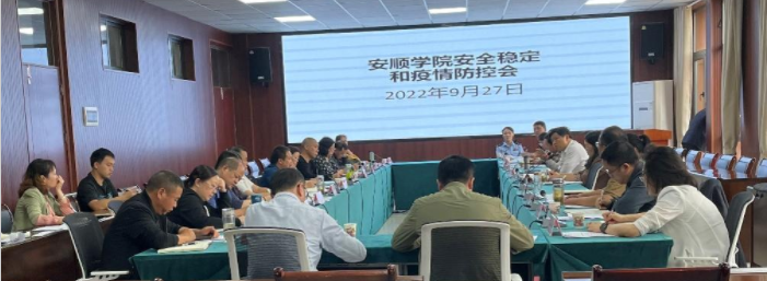 9月27日下午,安顺学院在安道楼第一会议室召开校园安全稳定和疫情防控会。安顺学院党委书记罗荣彬,党委副书记、校长陈云坤,党委委员、副校长殷红敏,各基层党委书记、相关职能部门负责人参加会议。会议由殷红敏主持。
