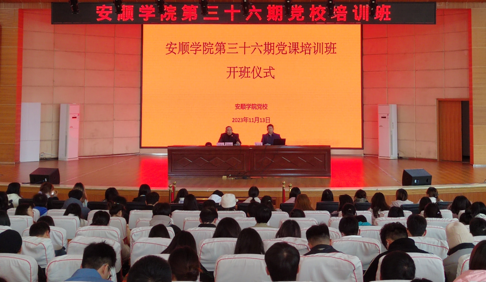 2023年11月13日,安顺学院第36期党校培训班在学术报告厅开班,安顺学院党委副书记陶文彩出席开班仪式并授课,485名入党积极分子和发展对象参加学习培训。安顺学院党委委员、党委组织部部长何朝越主持开班仪式。