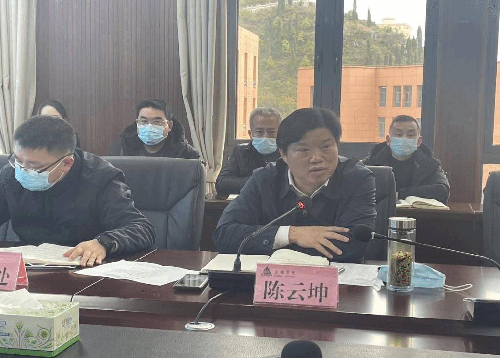 2022年12月14日下午,学习贯彻党的二十大精神 我为群众办实事——安顺学院2022年“面对面,心对心”师生座谈会在安道楼505召开。安顺学院党委副书记、校长陈云坤出席。各二级学院学生代表30人,党政办、宣传部、学工部、教务处、质评中心、招就处、后勤处、保卫处、团委、图书馆等部门负责人、第三方服务机构代表和其他有关人员参加。座谈会由学工部部长鲁小周主持。