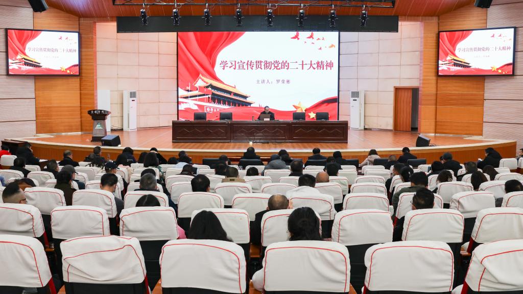 罗荣彬书记以《深入学习贯彻党的二十大精神 推动安顺学院高质量发展》为题,从“党的二十大的主题和主要成果,党的二十大的主要精神和丰富内涵,认真做好党的二十大精神的学习宣传贯彻,推动安顺学院特色高质量发展”四个方面,深入解读了党的二十大精神。