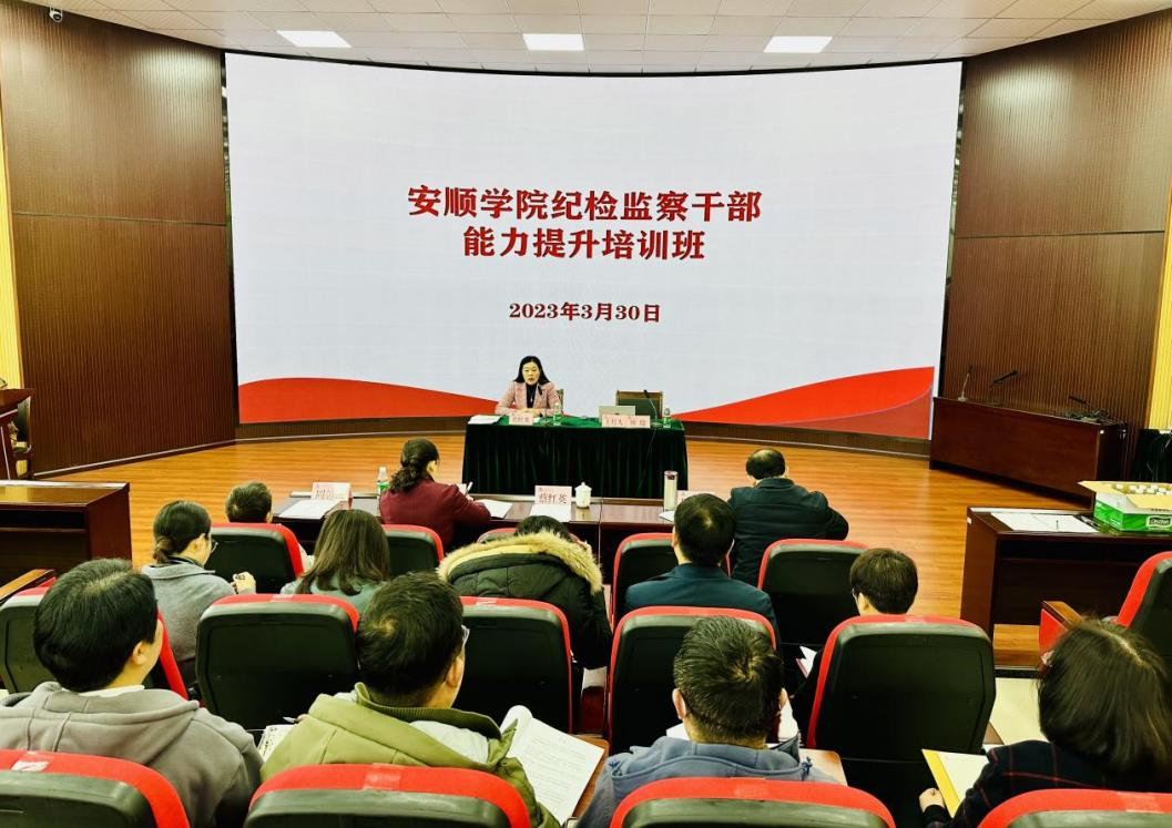 为深入贯彻落实党的二十大精神,推动纪检监察干部队伍教育整顿走深走实,进一步提升安顺学院纪检监察干部队伍综合素养,结合学校实际,2023年3月30日,安顺学院纪委监察专员办公室举办纪检监察干部能力提升培训班。安顺学院党委委员、纪委书记、监察专员蔡红英出席,校纪委委员、学校纪委监察专员办全体干部、各二级党委纪检委员共20余人参加培训。