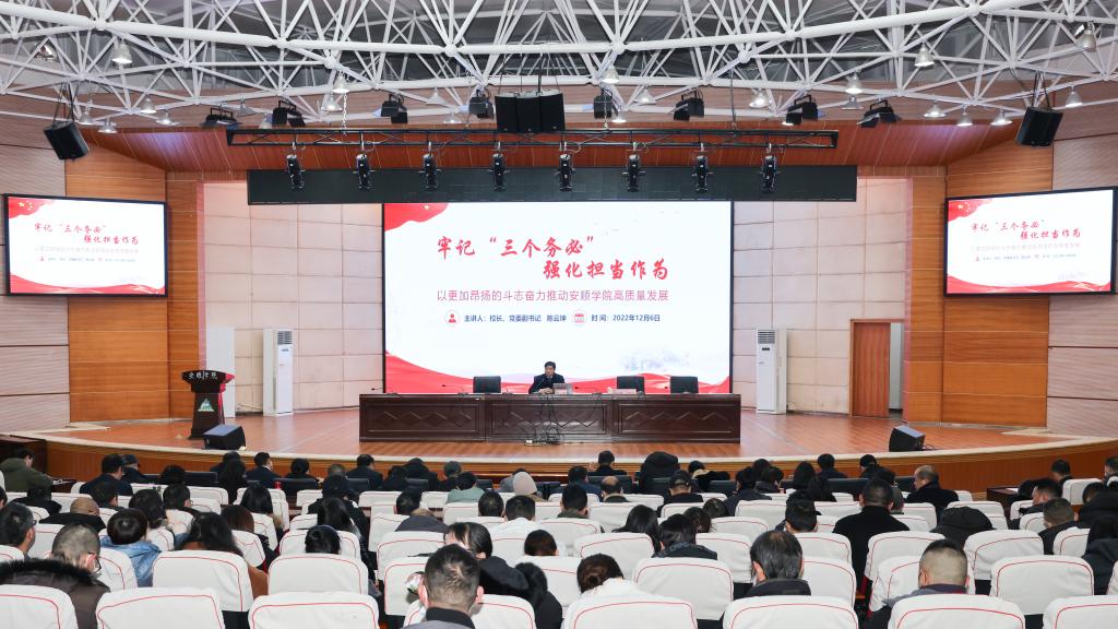 陈云坤校长强调,全校党员干部要认真学习贯彻党的二十大精神,把习近平总书记在党的二十大报告中强调的“三个务必”牢记于心,并结合自身工作实际,强化担当作为。要深刻把握“三个务必”精神内涵,为实现学校的任务目标汇聚强大思想动力;积极融入科教兴国、人才强国、创新驱动发展战略,全力推动安顺学院高质量发展;深入学习、全面贯彻党的二十大精神,引领推动学校各项工作落地落实。
