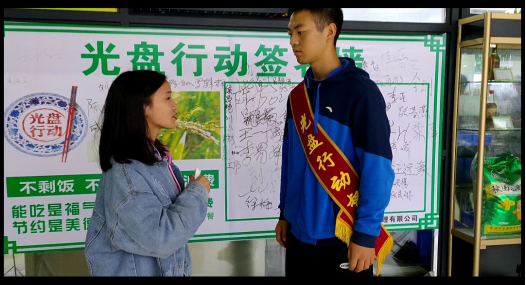 万事万物,顺其而行。其实在日常生活中有很多举动是不需要理由去做的,辟如唱歌,辟如拥抱,辟如光盘行动……当内敛而可爱的女孩被记者猝不及防提问时,露出羞涩的笑容回答着我们的问题。也许,在个别人看来某些事情是需要理由去坚持,但对她来说,有些东西是刻在骨子里的,并不需要被人去反复提及或者说提供理由。在女孩的生活里,“光盘”从来就不是条文规则,而是如同吃饭睡觉一般自然,是自己的日常生活而已。对她来说:“无一餐  不光盘”是一种生活常态、行为习惯罢了。